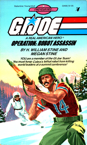 The GI Joe Team is the last hope for preventing world chaos in OPERATION: ROBOT ASSASSIN.Military intelligence has learned that Cobra plans to assassinate all the world leaders and diplomats gathering for summit talks in Switzerland. Their weapon: an amazing, computer-controlled robot, so lifelike it can be disguised as one of the leaders, staff, or security guards.Your skill in defusing bombs as well as other explosive situations has earned you the code name Hotshot. Now you must choose which team to join - Wild Bill, Duke, Bazooka, and others who will attempt to infiltrate Cobra, or Snow Job, Quick Kick, Fling and their cohorts, who will visit hotels and villas to see what they can learn.In your quest to locate and diffuse the robot before it unleashes its devastating power, there are many choices to make - and each decision is up to you! The whole world will discover how skilled you really are, Hotshot as you FIND YOUR FATE.