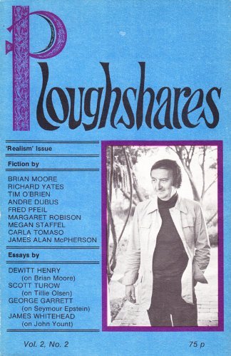 The Fall 1974 issue of Ploughshares, guest-edited by DeWitt Henry. Ploughshares, a journal of new writing, is guest-edited serially by prominent writers who explore different personal visions, aesthetics, and literary circles.Ploughshares founder and celebrated author DeWitt Henry compiles this volume of fiction subtitled, "Realism." The first ever of many themed Ploughshares issues, this edition emphasizes fiction that creates a devoted, even disturbing reflection of reality. By avoiding its usual portion of nonfiction work, this "realism" issue indicates how fictional works can sometimes be more truthful than real life. Henry compiles fiction from a masterful alliance of authors, including Brian Moore (The Magician's Wife) and Richard Yates (Revolutionary Road), along with future guest editors James Alan McPherson (Crabcakes), Tim O'Brien (July, July), and Andre Dubus (Broken Vessels). ARTICLE"The Novels of Brian Moore: a retrospective," by DeWitt HenryFICTION"Preliminary Pages For A Work of Revenge," by Brian Moore"Evening on the Cote D'Azur, 1952," by Richard Yates"A Man of Melancholy Disposition," by Tim O'Brien"Goodbye," by Andre Dubus"Skeeter's Last Reflections," by Fred Pfeil"Willie Mae's Vision," by Margaret R. Robison"The Provider," by Megan Staffel"Husbandly Needs," by Carla Tomaso"I Am An American," by James Alan McPherson