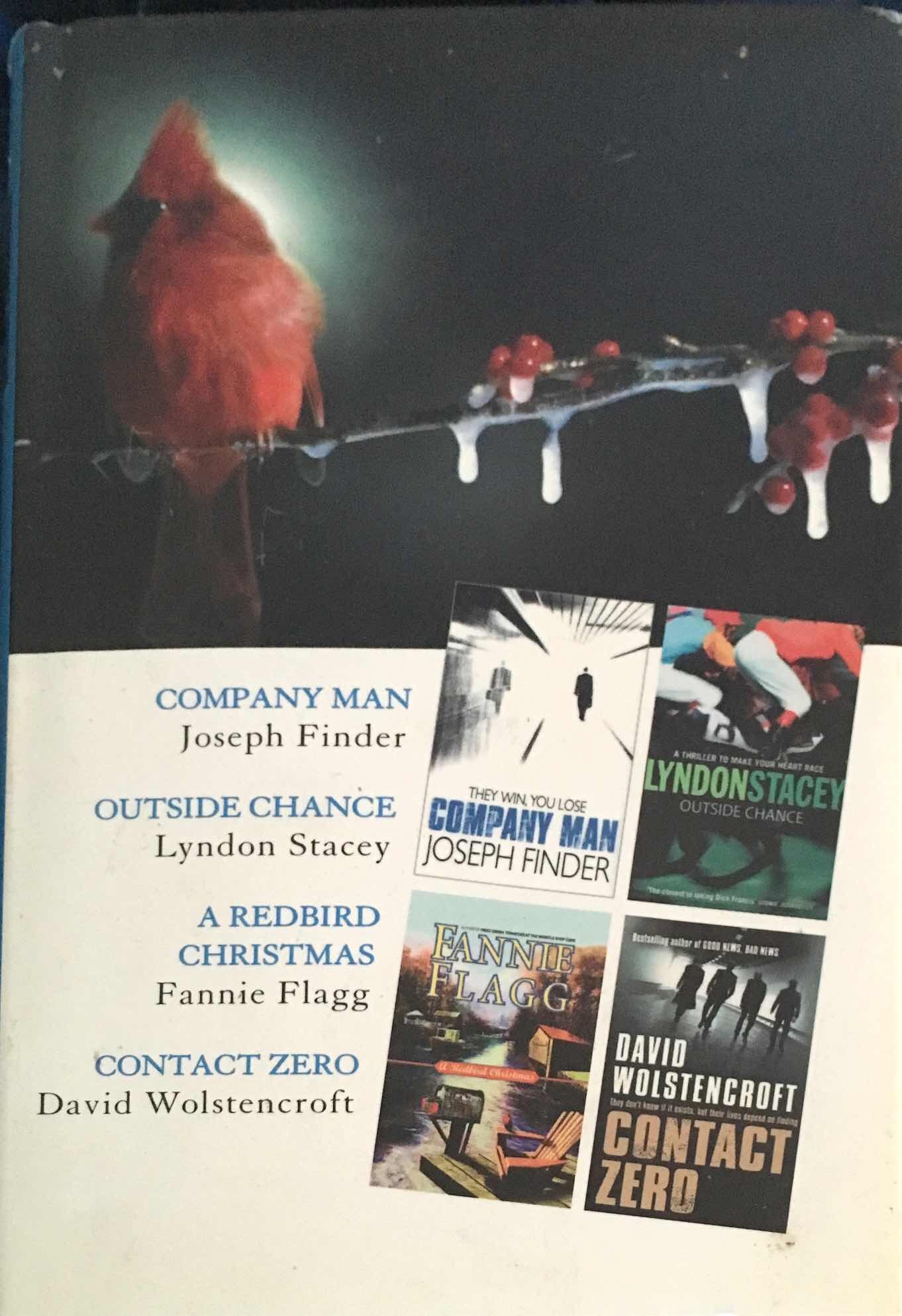 Four Books In One1) Company Man (Joseph Finder)2) Outside Change (Lyndon Stacey)3) A Redbird Christmas (Fannie Flagg)4) Contact Zero (David Wolstencroft)