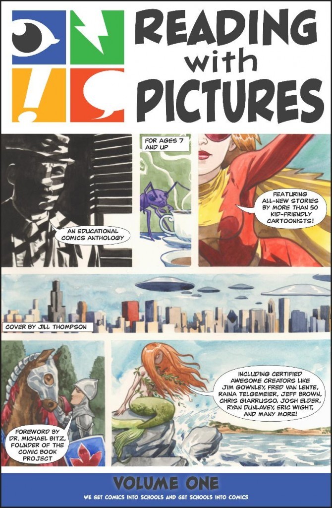 An educational comics anthology for ages 7 and up that features all-new stories by more than 50 award-winning and kid-friendly cartoonists with an introduction by Dr. Michael Bitz, founder of The Comic Book Project. The anthology features a cover by Jill Thompson (The Sandman, Scary Godmother) and stories by Fred Van Lente (Amazing Spider-Man), Ryan Dunlavey (Action Philosophers), Jeffrey Brown (Sulk), Raina Telgemeier (The Baby-Sitter's Club), Jim Gownley (Amelia Rules), Chris Giarrusso (Mini-Marvels), John Gallagher and Rich Faber (Buzzboy), Eric Wight (Frankie Pickle), Gene Ambaum and Bill Barnes (Unshelved), Scott Sava (Dreamland Chronicles), the Fillbach Brothers (Star Wars: The Clone Wars), John Bivens (Comic Book Tattoo), Russell Lissau (Shrek), RWP Executive Director Josh Elder (Mail Order Ninja) and many more! All proceeds go to support Reading With Pictures in its mission to improve literacy through the use of comics in the classroom.