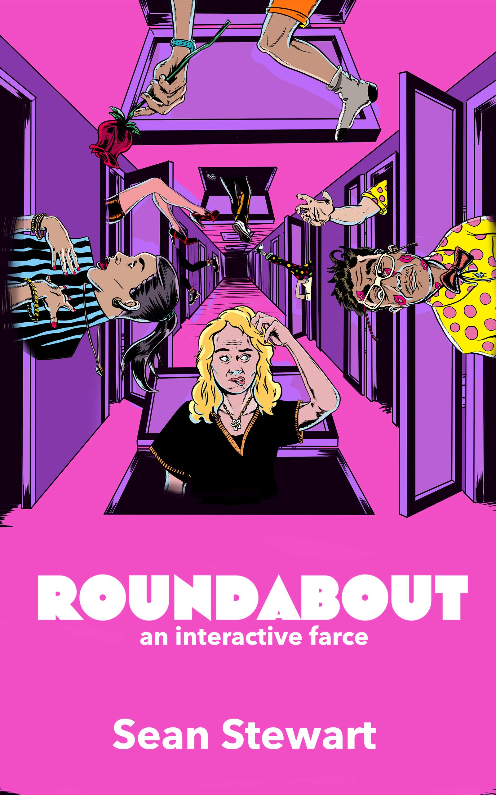 Roundabout is an interactive comedy for three and a half actors, designed to be performed on a live streaming venue such as Twitch or Facebook Live. This is a complete script and design doc for use by theater groups who want to put on a show that doesn't require a traditional venue, those interested in designing interactive entertainment, or readers who just want to read a funny story about relatable human beings and don't mind that it has twelve different possible endings. Kit, Sam, and Pat are just starting their first jobs. You’d think a rocky economy and a love triangle would be trouble enough – but then they run into Alpha, Omega, and Phi, three skylarking digital beings desperate to download themselves into human bodies for the first time in 13,000 years. A madcap game of musical chairs begins, with six characters fighting for three bodies in pursuit of love, science, and an unfortunate spot of murder. The play is designed to be performed on live streaming platforms such as Twitch or Facebook Live, and blurs the line between actors and audience. It plays on two stages, the video window AND the chat channel, where audiences can talk to characters not currently in a body, and even choose which characters get to go back into meat, and when. Creator Sean Stewart has won an Emmy, a World Fantasy Award, and a Cannes Gold Lion. His characters and stories defined the Alternate Reality Game genre, including I Love Bees for Halo 2 and Nine Inch Nails’ Year Zero. He is the author of the international best-seller Cathy’s Book, and the only Star Wars novel truly focused on Yoda – Dark Rendezvous. No, he probably won’t do the voice. Roundabout was created in collaboration with The National Institute of Dramatic Art (NIDA), Australia’s world-class theater academy. Its graduates include Cate Blanchett, Baz Luhrmann and Mel Gibson.