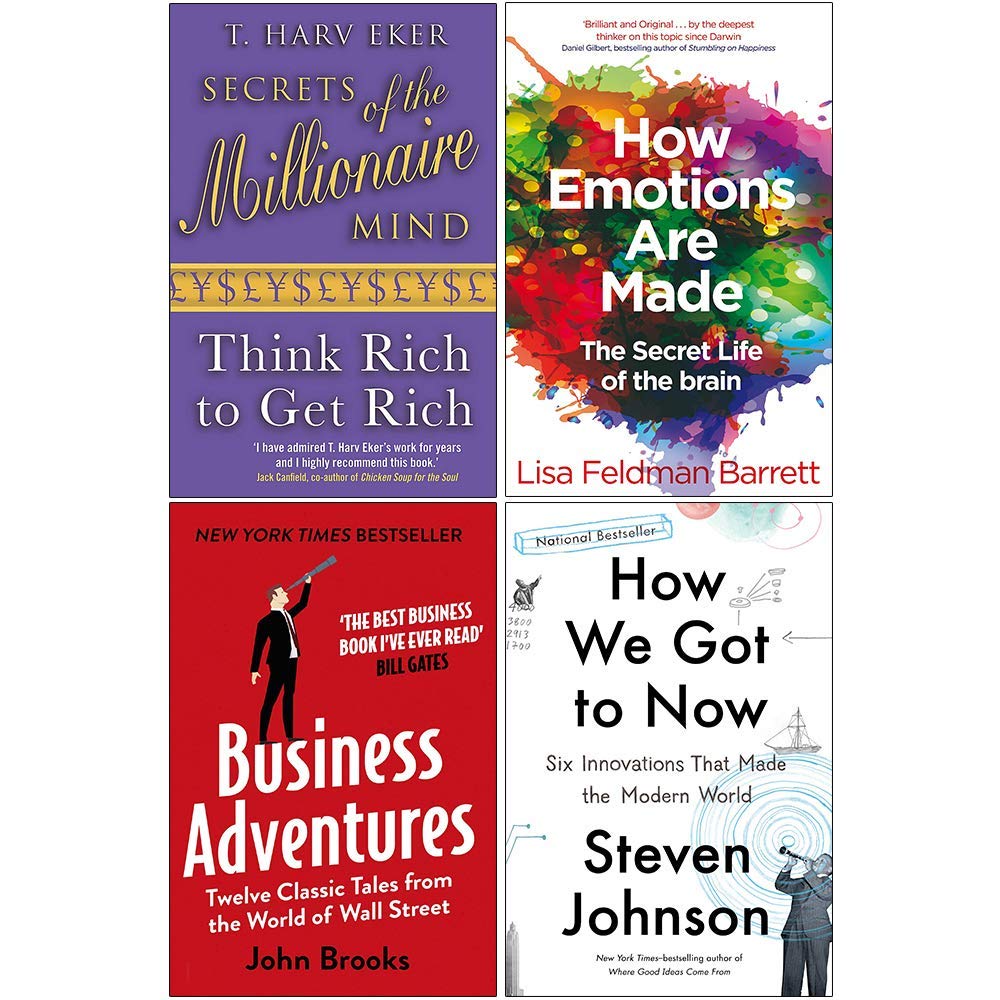 Secrets of the Millionaire Mind, How Emotions are Made, Business Adventures, How We Got to Now 4 Books Collection Set