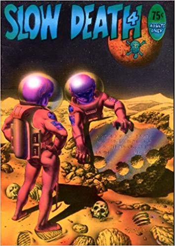Certification #: 0226766003 Slow Death 4 Issue 11/72 Issue 1972 Last Gasp 6.0 Page OFF-WHITE Grade 03/27/2014 Universal Art Tom Veitch story, Richard Corben cover Richard Corben & George Metzger story & art, Greg Irons & Jack Jackson art Key Magnus Robot Fighter parody. George Metzger leads off Slow Death #4 with a story about a drug-happy hippy who is given a "truth" pill by a mysterious "religious nut" and discovers the world is populated with robots (he shoulda stuck with the acid). Greg Irons and Tom Veitch give us a futuristic world (29 years into the 2001) where pot is legal but being straight isn't. We get another robot tale a few pages later from Richard Corben and it doesn't end any better than the first one. The book closes with a rare collaboration between Tom Veitch and Jack Jackson called "Homesick," which features a man on a distant planet from his native Earth, who is watching over a colony of mutants and hoping a passing spaceship will finally take him back to Earth. After many years, he gets his wish, but discovers that being homesick was really just a waste of time. COMIC Ron Turner - editor, 35 (text) Richard Corben - 1, 17-26 Dave Sheridan - 2, 36 (ad) George Metzger - 3-10 Greg Irons - 11-16 (art) Tom Veitch - 11-16 (script), 27-34 (script) Jack Jackson - 27-34 (art) Eric Kimball - 35 AF & Army GIs of the First Air Cavalry - 35 (poem)