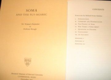 (LIMITED EDITION OF 1000 COPIES ONLY) The book is finely printed in Italy by the press of Stamperia Valdonega. The title page is printed in red and black ink. This book is not the same as the author's large book on Soma. The information in this book is not contained in the author's large book on Soma. OUT OF PRINT TABLE OF FOREWARD BY RICHARD EVANS SCHULTES CHAPTER 1: Introduction CHAPTER 2: Chemistry and Pharmacology of Soma CHAPTER 3: The Persona of Soma CHAPTER 4: Was There A Soma-Urine CHAPTER 5: Questions of Exegesis CHAPTER 6: Conclusion CHAPTER 7: An Early Man and Plant Hallucinogens APPENDIX 1: Resent Bibliography on A. muscaria APPENDIX 2: Manner of Ingesting the Fly-Agaric Among Siberian Natives APPENDIX 3: Professor Marija Gimbutas on Uses of Fly-Agaric in European Russia. APPENDIX 4: Principle Reviews of Soma
