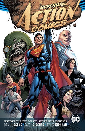 A lavish hardcover collects the first two volume of legendary SUPERMAN writer Dan Jurgens and superstar artists Patch Zircher & Tyler Kirkham’s bold reimagining of the greatest superhero of all time! After an extinction-level event that shattered the cosmos, Superman found himself in a world very much like his own, but populated by a new breed of younger, angrier heroes-including a whole new Superman. And when that Superman fell in the line of duty, the original Man of Steel stepped up to take his place. But at what cost? No sooner does the legendary hero take to the skies than his greatest enemies emerge to face him, from Metropolis’ self-styled protector Lex Luthor to the engine of death and destruction known as Doomsday. Meanwhile, a person-or being-claiming to be the real Clark Kent is dogging his every move. And back in the fields of Smallville, his wife, Lois, and son, Jonathan, face this strange new world as well. A new era has dawned. Is the Man of Tomorrow ready to face it? Find out in SUPERMAN: ACTION COMICS: THE REBIRTH DELUXE EDITION BOOK 1! Collects ACTION COMICS #957-966 and JUSTICE LEAGUE #52.