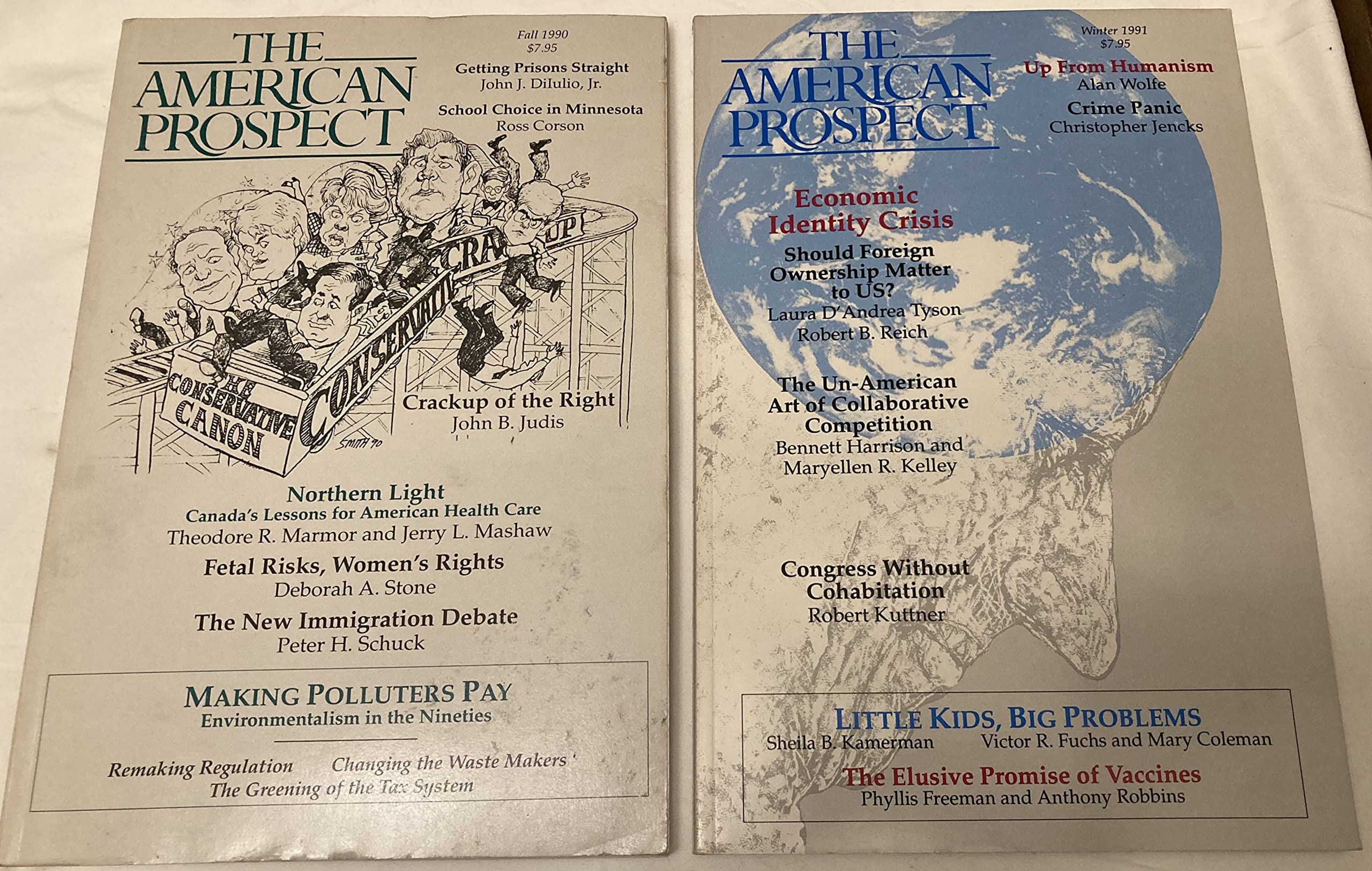 Two issues of The American Fall 1990 (No. 3) and Winter 1991 (No. 4). With articles on a variety of the crackup of the right, school choice in Minnesota, Canada's health care lessons for America, fetal risks and women's rights, making polluters pay, whether foreign ownership should matter to the US, collaborative competition, the panic over crime and much more. Each volume is 128 pages.