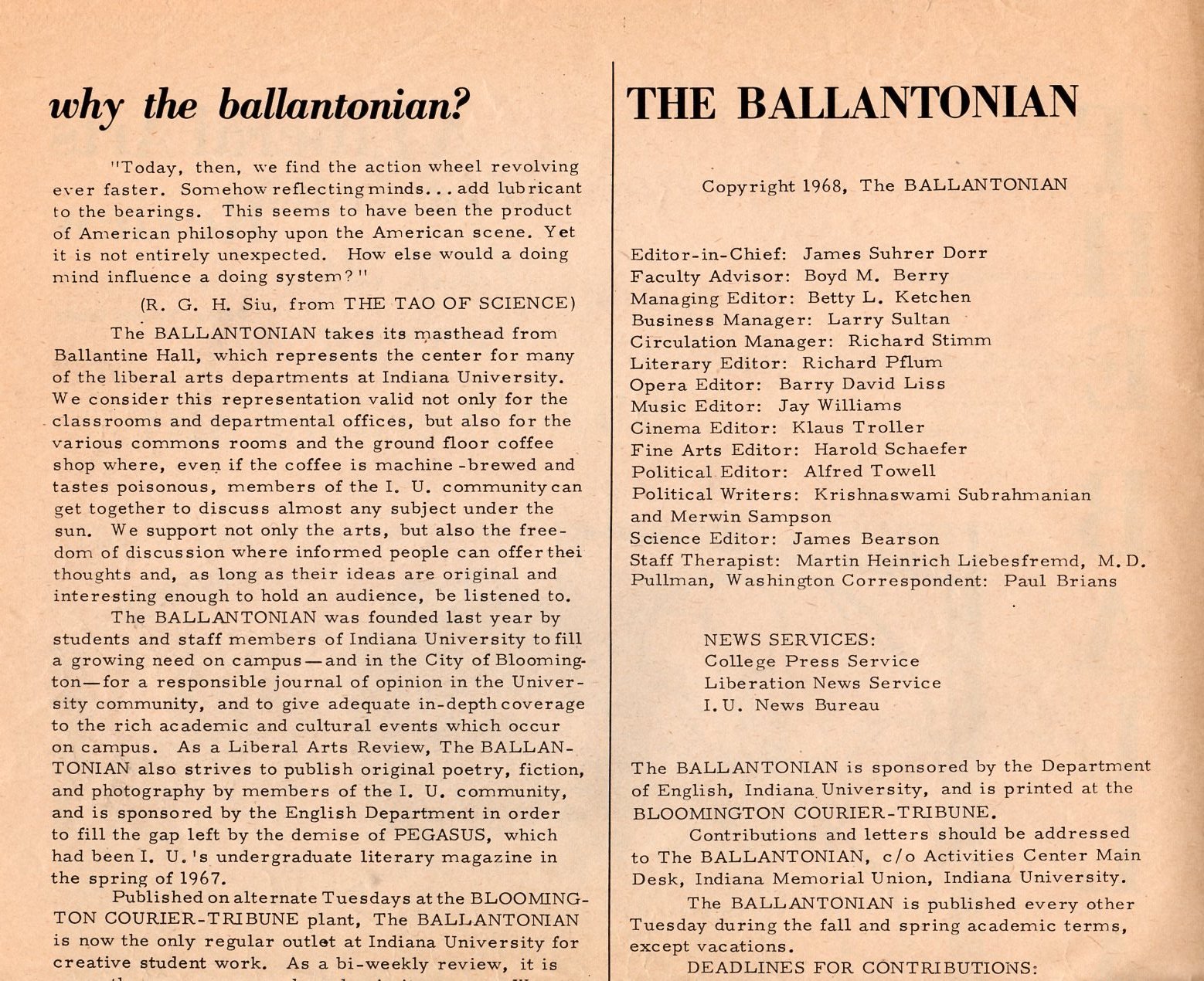 The Ballantonian - A Liberal Arts Review - Vol. III, No.1 - September 17, 1968