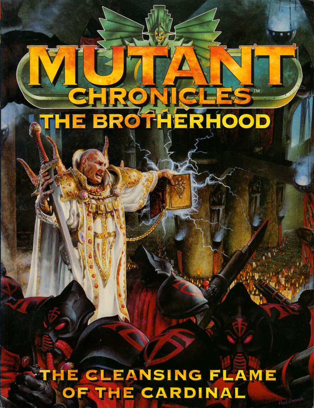 In The The Cleansing Flame of the Cardinal, you will find everything you need to know about the most proud and powerful association in the fantastic world of Mutant Chronicles - the glorious Brotherhood. You'll find descriptions of Inquisitors, Mystics, Mortificators, the Cardinal, the Archangels, the Sacred Warriors, the Fury Elite Guard, Retributor Carbines and Castigator spears, the Icarus jet-fighter, Artifacts, The First Cathedral, four new aspects of the Art with more than twenty new spells, seventeen new backgrounds, unique Brotherhood skills and special events, Heart of a complete adventure, plus much more…