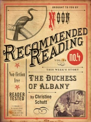 "Any reader unfamiliar with Christine Schutt’s work should prepare for an unprecedented event. This is courageous fiction," writes Diane Williams, acclaimed author and editor of NOON, in her introduction to this issue of Recommended Reading."The duchess in this story is an older woman in extremis. She is in mourning for her beloved husband, whose garden, in all its patterns and colorations, has sustained them both. Now his remark about gardens dying with their gardeners rouses her to keep the garden alive and so keep some part of him alive. She is a noble woman in her efforts—a flower in the garden."About Recommended Reading:Great authors inspire us. But what about the stories that inspire them? Recommended Reading, the latest project from Electric Literature, publishes one story every week, each chosen by a great author or editor. In this age of distraction, we uncover writing that's worth slowing down and spending some time with. And in doing so, we help give great writers, literary magazines, and independent presses the recognition (and readership) they deserve.About the author:Christine Schutt is the author of a short-story collections Nightwork, and A Night, A Day, Another Night, Summer. The former was chosen by poet John Ashbery as the best book of 1996 for the Times Literary Supplement. Her first novel, Florida, was a National Book Award finalist for fiction in 2004. Her second novel, All Souls, was a Pulitzer Prize for Fiction finalist in 2009. Her new novel, Prosperous Friends, is out now from Grove Press. About the Guest Editor:Founded in 2000 by Diane Williams—NOON (a literary annual)—is dedicated to supporting important literary art. It has been critically acclaimed both in the U.S. and abroad. Its stories have been reprinted frequently and have won many prizes over the years, including an O.Henry Prize for “The Duchess of Albany” presented here. Two of its stories were selected for the 2014 Pushcart Prize edition. The current NOON was reviewed in The Los Angeles Times this April by David Olin in an article entitled “The Discreet Charm of NOON.” He called it “…a compendium of unlikely pleasures: short prose and illustrations that challenge us to think about meaning and narrative….[I]t is elegantly designed and curated, a journal that wears its intentions on its sleeve. These are oblique stories, stories that exist in the interior, getting at the things we know but do not know we know.”