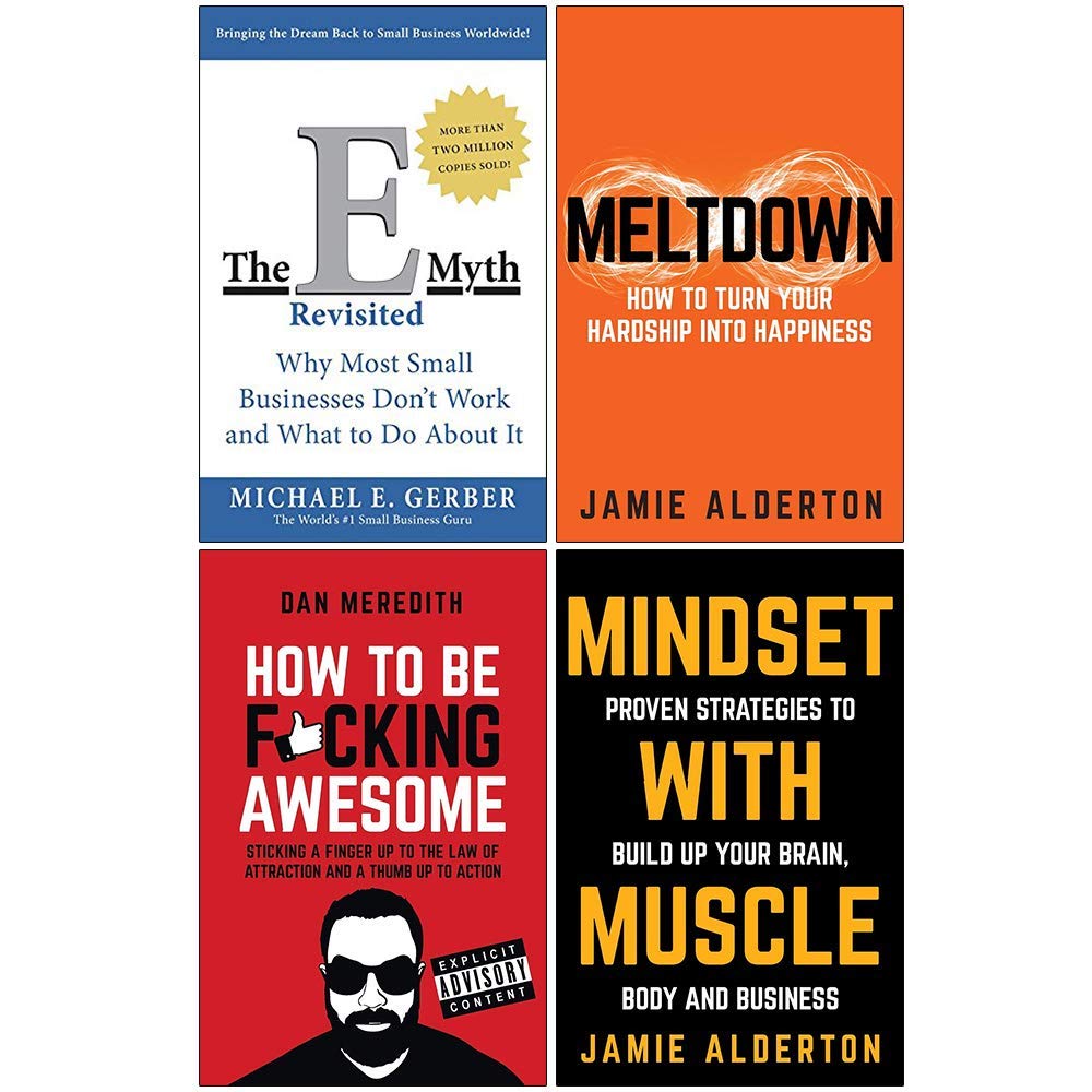 The E-Myth Revisited, Meltdown How To Turn Your Hardship Into Happiness, How To Be F*cking Awesome, Mindset With Muscle 4 Books Collection Set