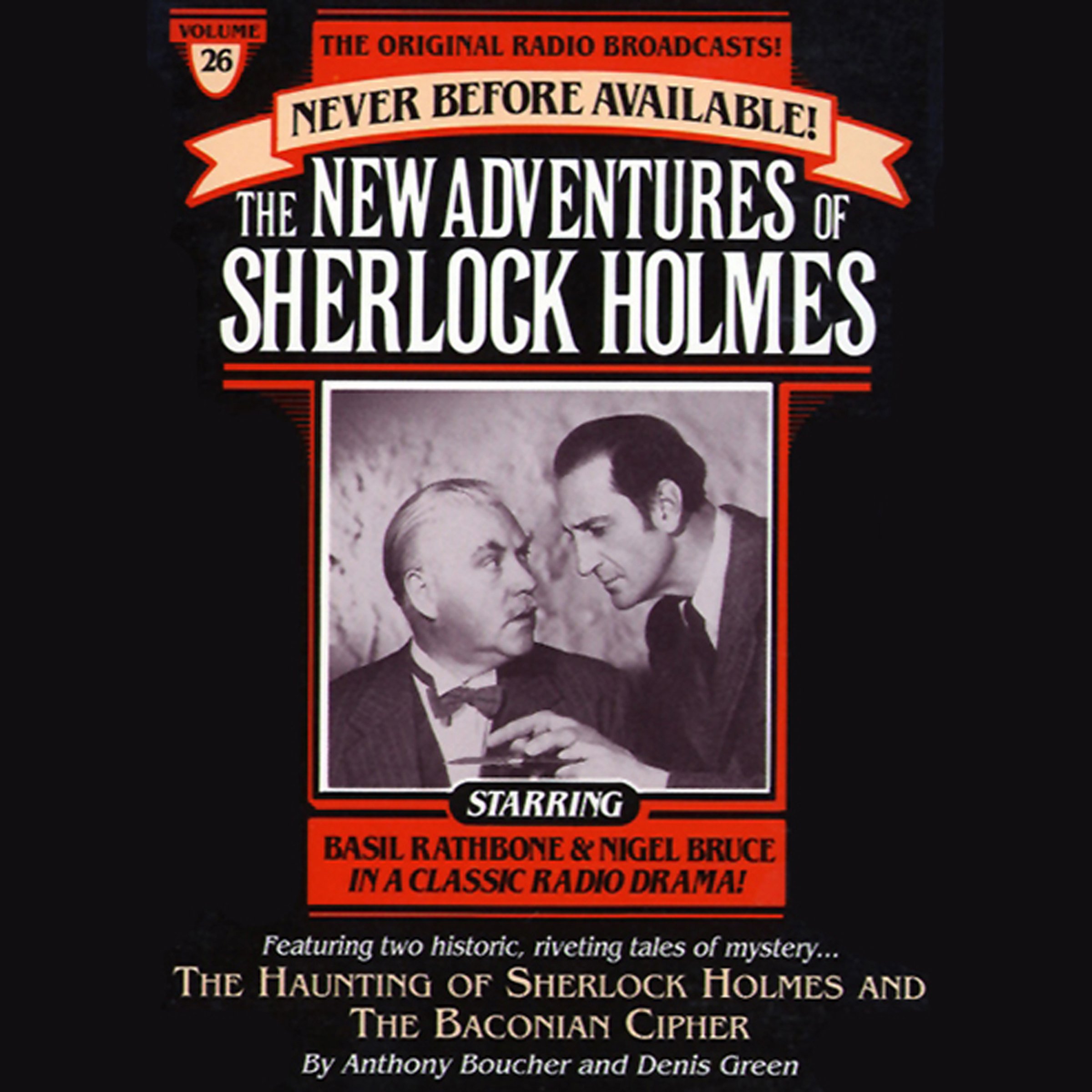From 1939 to 1946 Americans gathered around the radio to listen to The New Adventures of Sherlock Holmes-featuring Basil Rathbone as the high-strung crime-solver and Nigel Bruce as his phlegmatic assistant, Dr. Watson. Witty, fast-paced and always surprising, these great radio plays, written by the prolific writing team of Anthony Boucher and Denis Green, are as fresh today as they were then, and feature perfect sound along with nostalgic war-time announcements, original narrations and radio commercials.