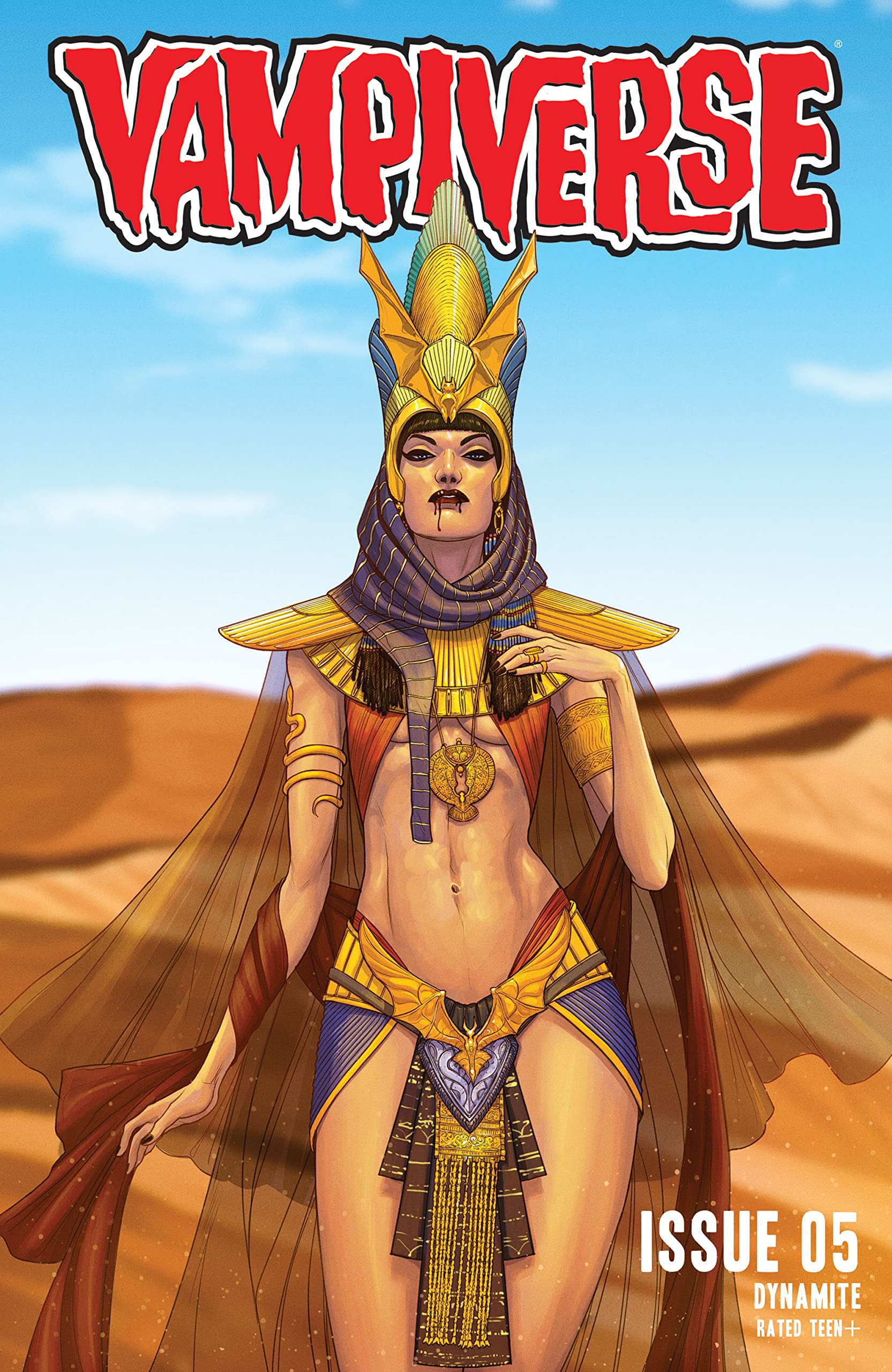 With Book as her captive, Bloodwing continues to murder Vampirellas across the different realities, searching for the missing pages of the Book of Prophecy in her twisted quest to find and destroy the Artist. Meanwhile, Vampirella and her sisters of Draculon do battle during the Stone Age against an ancient tribe of Chaos demons before beginning their journey to save all reality. This penultimate issue of VampiVerse has it all—death, destruction and more Vampirellas than you can shake a stick at! You don’t want to miss this one!