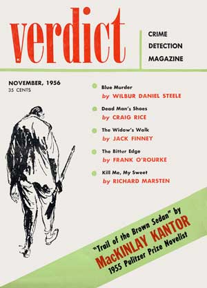 The Widow’s Walk by Jack FinneyThe Bitter Edge by Frank O’RourkeBlue Murder by Wilbur Daniel SteelePriest Hole by Clayre & Michel LipmanKill Me, My Sweet by Richard Marsten The Trail of the Brown Sedan [Nick & Dave Glennan] by MacKinlay KantorHangman’s Witness by Wade H. MosbyDead Men’s Shoes [John J. Malone] by Craig RiceShadow on the Hill by David C. CookeBridge Game by Bryce Walton