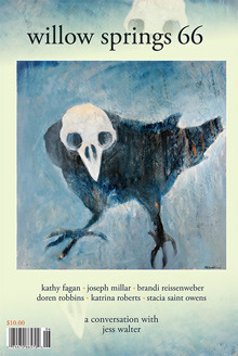 Willow Springs issue 66 features poetry and prose by Kathy Fagan, Joseph Millar, Brandi Reissenweber, Doren Robbins, Katrina Roberts, and Stacia Saint Owens. Jess Walter discusses structure, invention, plot, and place in fiction. "I don't have some bag of devices" he says. "But I certainly am constantly looking for something inventive to do with structure, with voice, with all of those elemental pieces of writing that combine to make the whole."