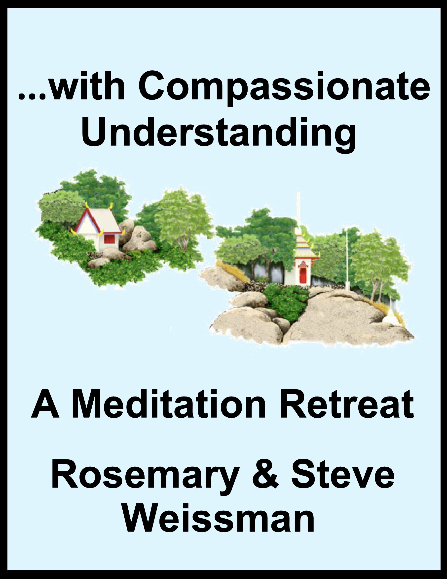 "...with Compassionate Understanding, A Meditation Retreat" guides readers through a silent meditation retreat devoted to the inner journey. Rosemary & Steve Weissman have helped thousands take that journey while living and teaching at Wat Kow Tahm (Mountain Cave) International Meditation Center, Koh Pah-ngan Island, Thailand for 25 years (1988-2013), and now continuing to teach in the West. Based on the wise, compassionate teachings of the Buddha found in Theravada Buddhism, these clear methods help train the mind in order to experience more inner peace and compassionate understanding. An important part of this type of mental training is to develop keen awareness of our actions, speech and thoughts. This awareness, also referred to as mindfulness, is essential in order to develop clarity and strength in the mind. With this clarity and strength we are then able to see which actions, speech and thoughts lead to stress and difficulties, and which lead to peace and harmony in ourselves and in others. The development of compassion, lovingkindness, patience, endurance, energy, equanimity, joy and wisdom is emphasized. As well, this practice helps in the letting go of qualities that interfere with our inner well being, such as greed, hatred, anger, jealousy, fear, worry, grief and ignorance. A compassionate intention behind our actions, speech and thoughts greatly aids the development of mindfulness, and encourages us to not cause harm or difficulty for ourselves or others. As we develop this compassionate awareness within, the more we see that mindfulness is an extremely valuable way to develop our understanding of life in all aspects. Then, with this compassionate understanding, we can work toward increasing beneficial qualities and lessening unbeneficial qualities. This will create the causes and conditions that will produce more peace, contentment and deeper happiness. We hope this book will aid many to find more peace and contentment, and to lessen difficulties and problems, with compassion, patience, lovingkindness, equanimity, joy, acceptance, and ...with Compassionate Understanding.