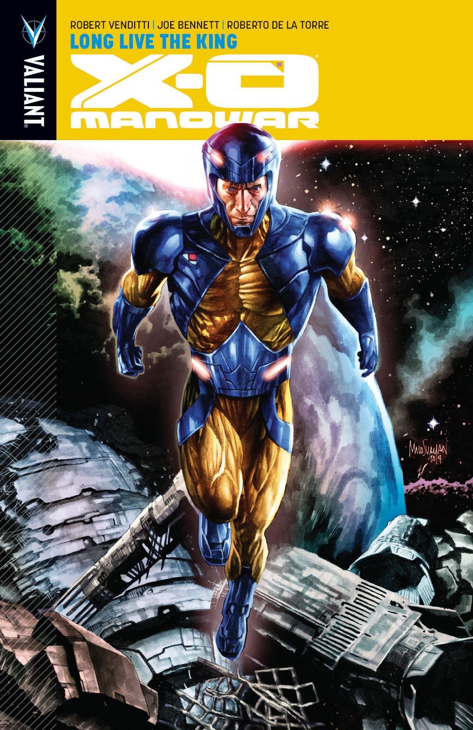 Witness the last stand of Earth's greatest champion in Long Live the King! They're here! The Torment, a world-devouring race older than history itself, has arrived on Earth. And now, all that stands between our existence and complete annihilation is Aric of Dacia, heir to the Visigoth throne and wielder of the X-O Manowar armor! But as the Torment unleash a wrath unlike anything the galaxy has seen, even Earth's most powerful protector will find himself hopelessly outmatched. With humanity standing on the brink of extinction, X-O Manowar must turn to his greatest adversary for help: the savage Commander Trill!New York Times best-selling writer Robert Venditti (Wrath of the Eternal Warrior) and acclaimed artists Joe Bennett (52) and Roberto De La Torre (Daredevil) make history across the cosmos as Valiant's flagship series marches toward a planet-shaking finale!Collecting: X-O Manowar 47-50